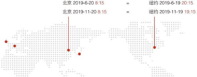 对于2019-11-20和2019-6-20两个日期来说,假设北京人在纽约: